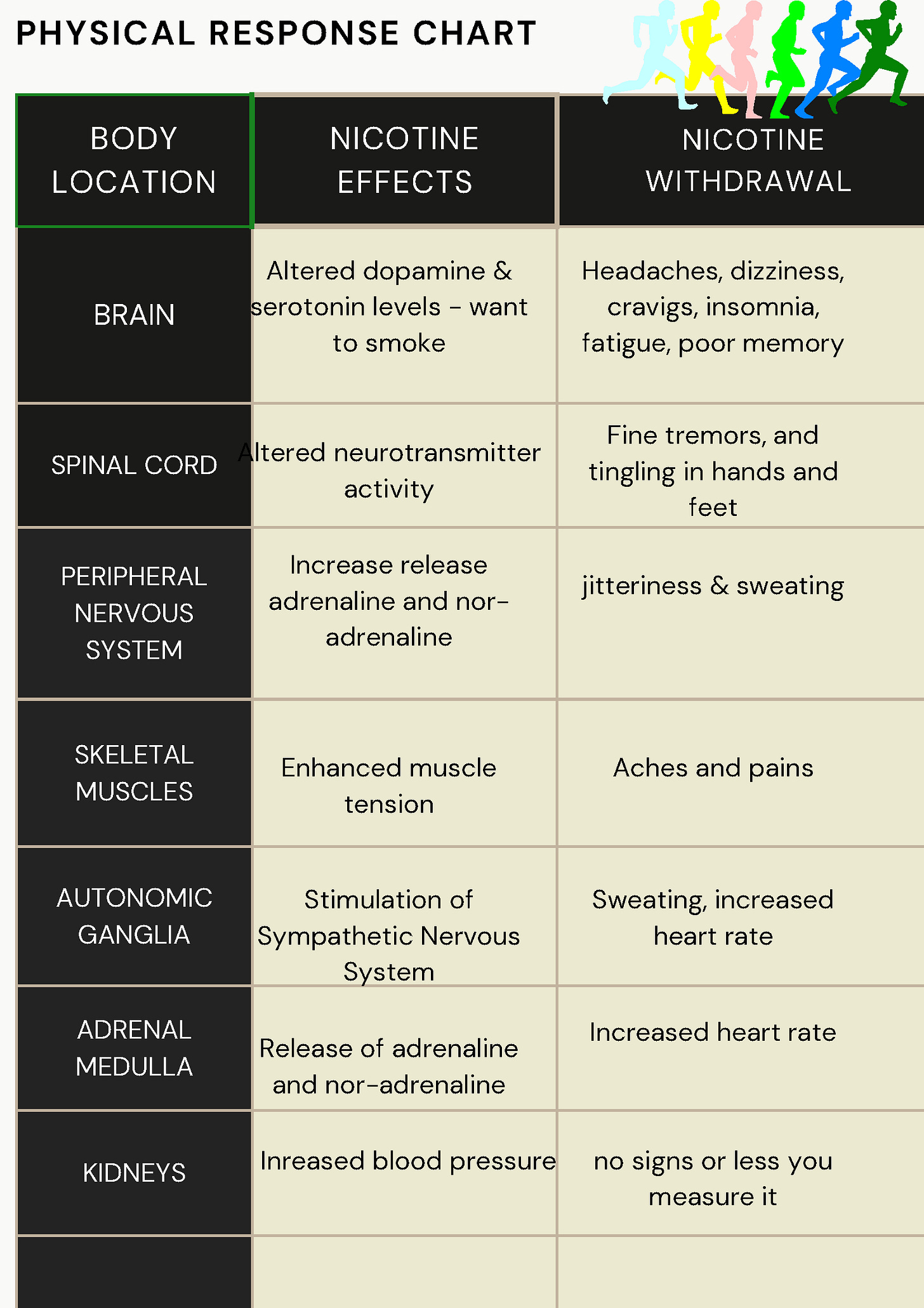 Chart: Physical Response to Nicotine Withdrawal by Quit Coach Sue